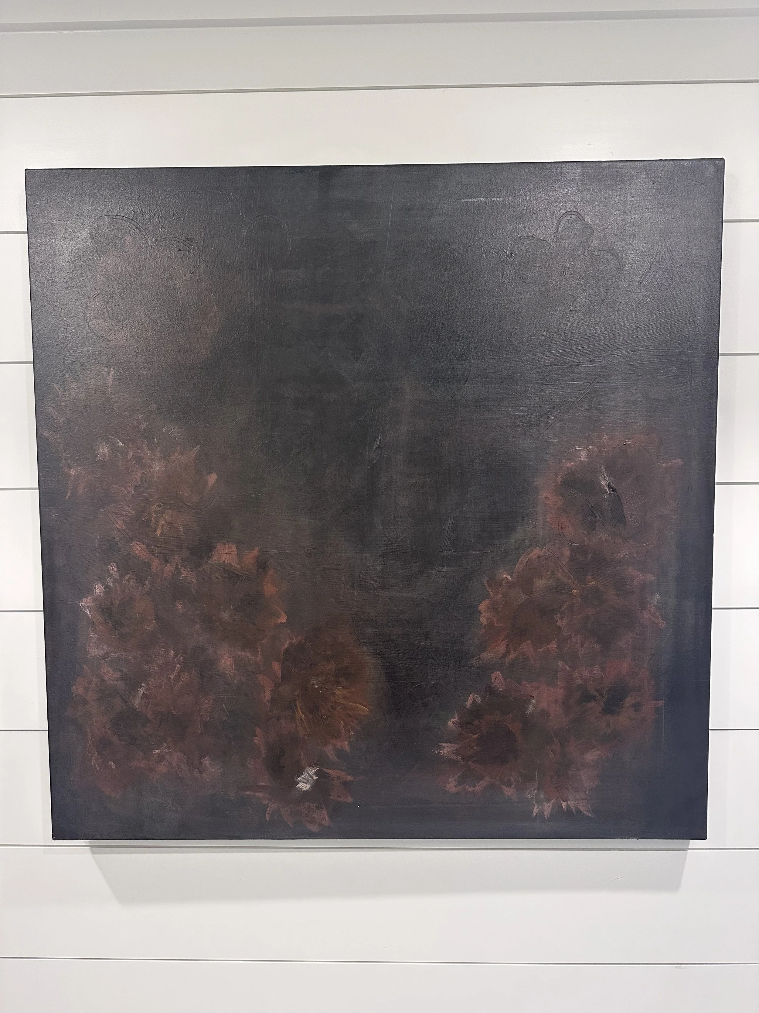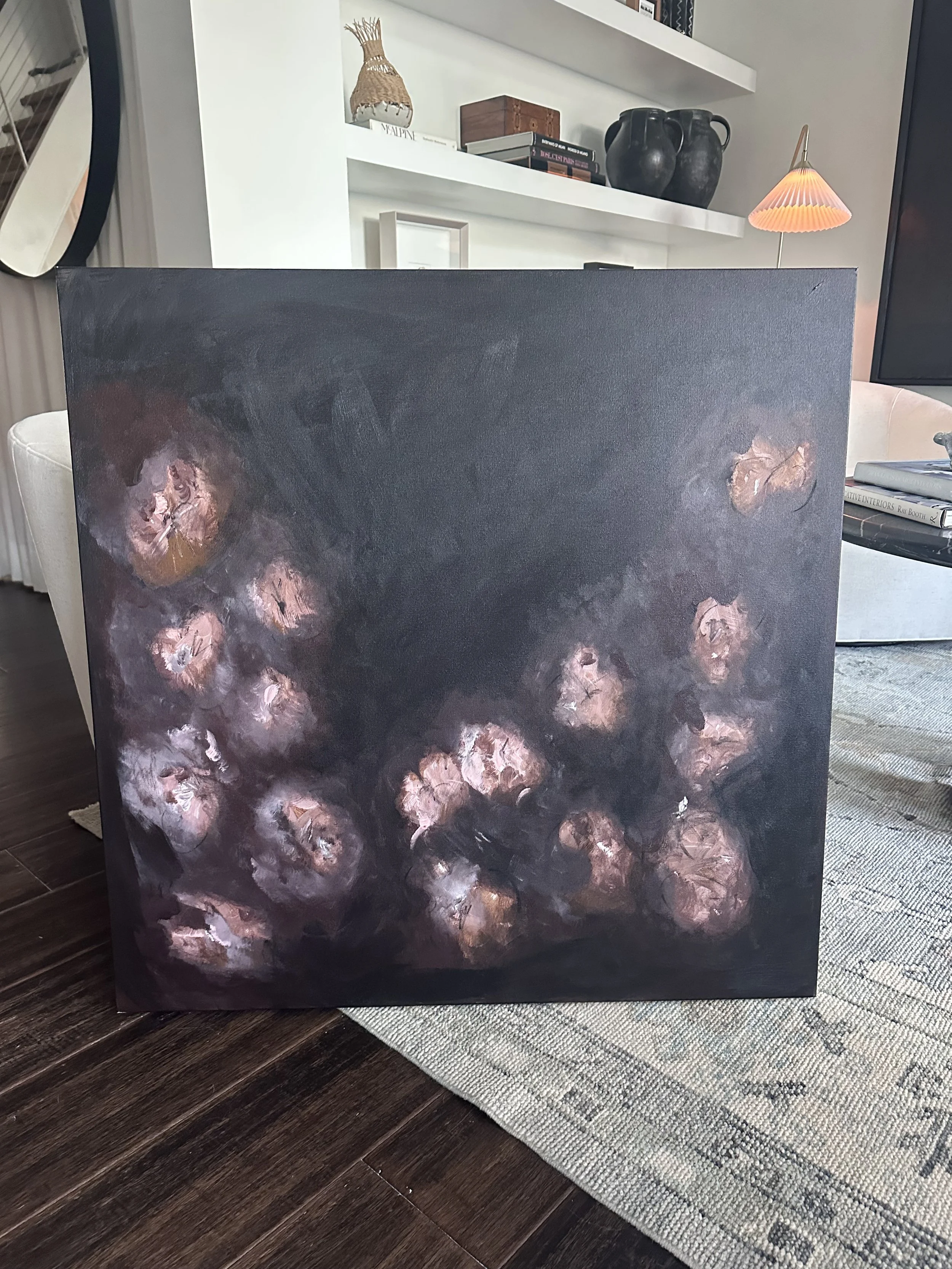 36 x 36 ACRYLIC AND GRAPHITE CABBAGE ROSES $2200.00