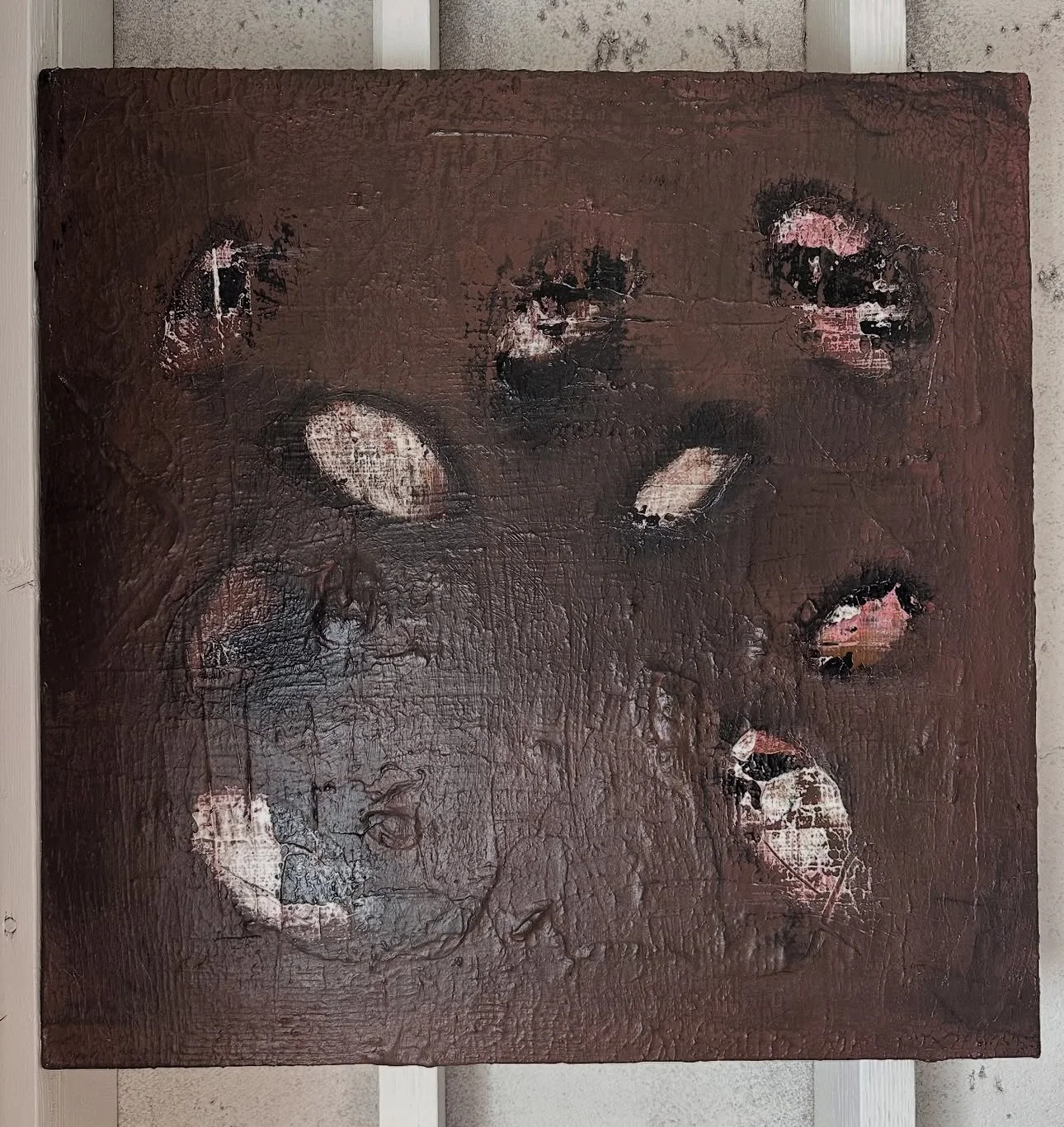 30X30 WABI SABI ACRYLIC RIPPED CANVAS OVER BOARD $1500.00 SOLD